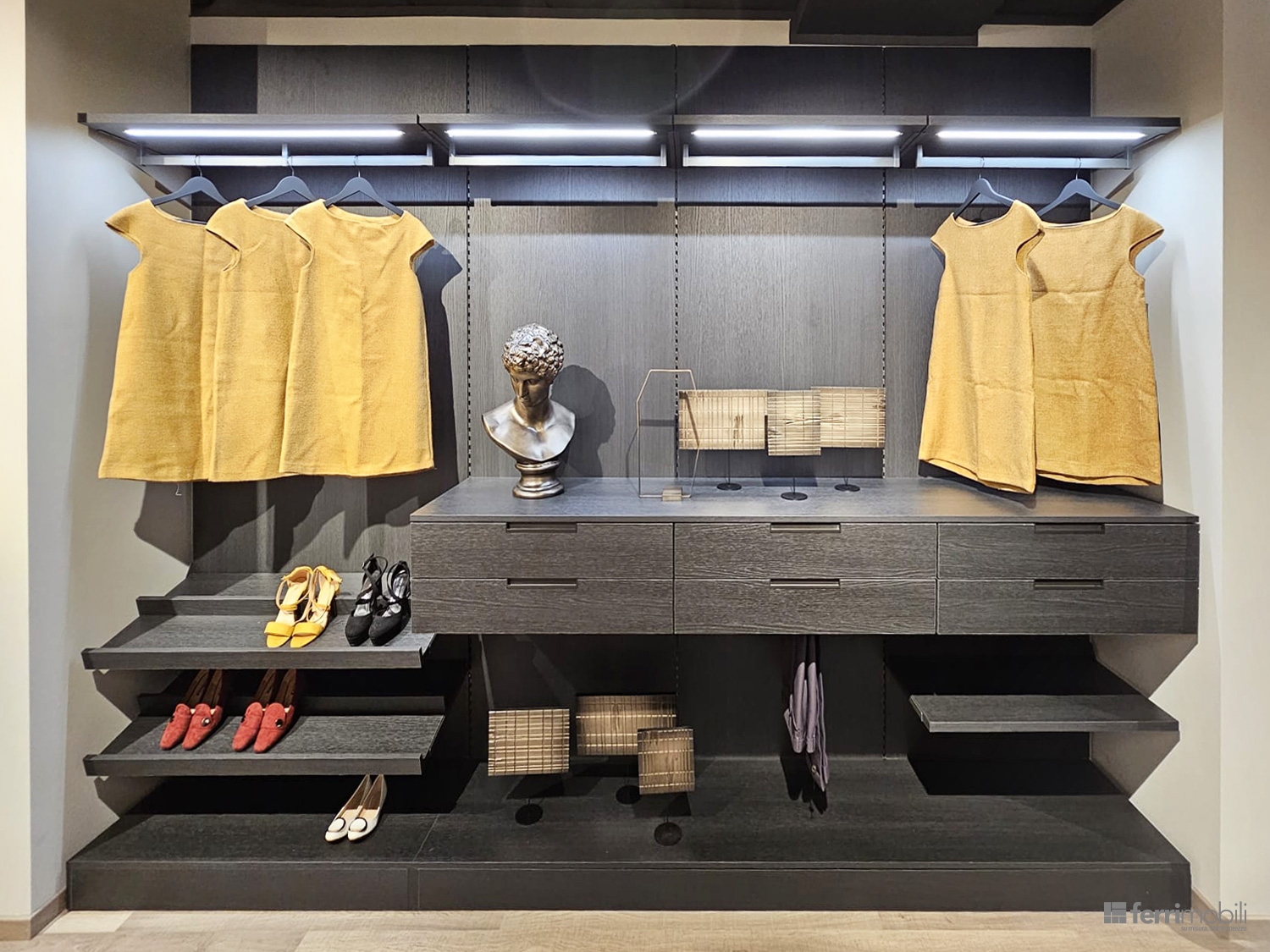 Cabina armadio su misura attrezzata con cassettiere e ripiani (MIS HU 7820)