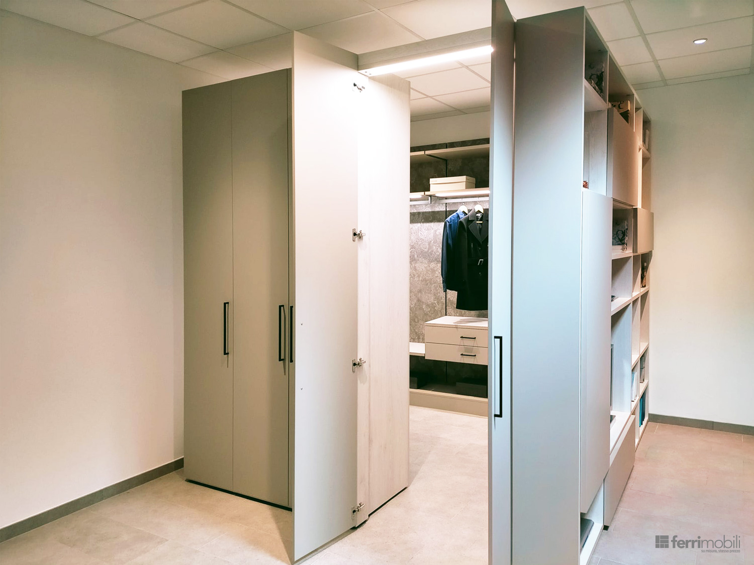 Zona lavanderia su misura separata da portale con ante scorrevoli (MIS LV 6789)