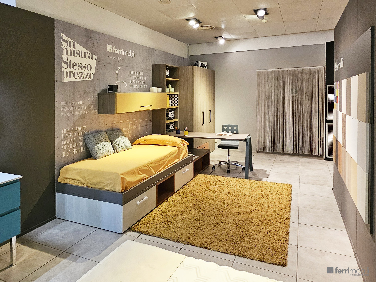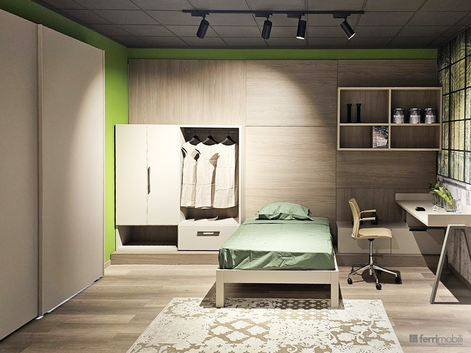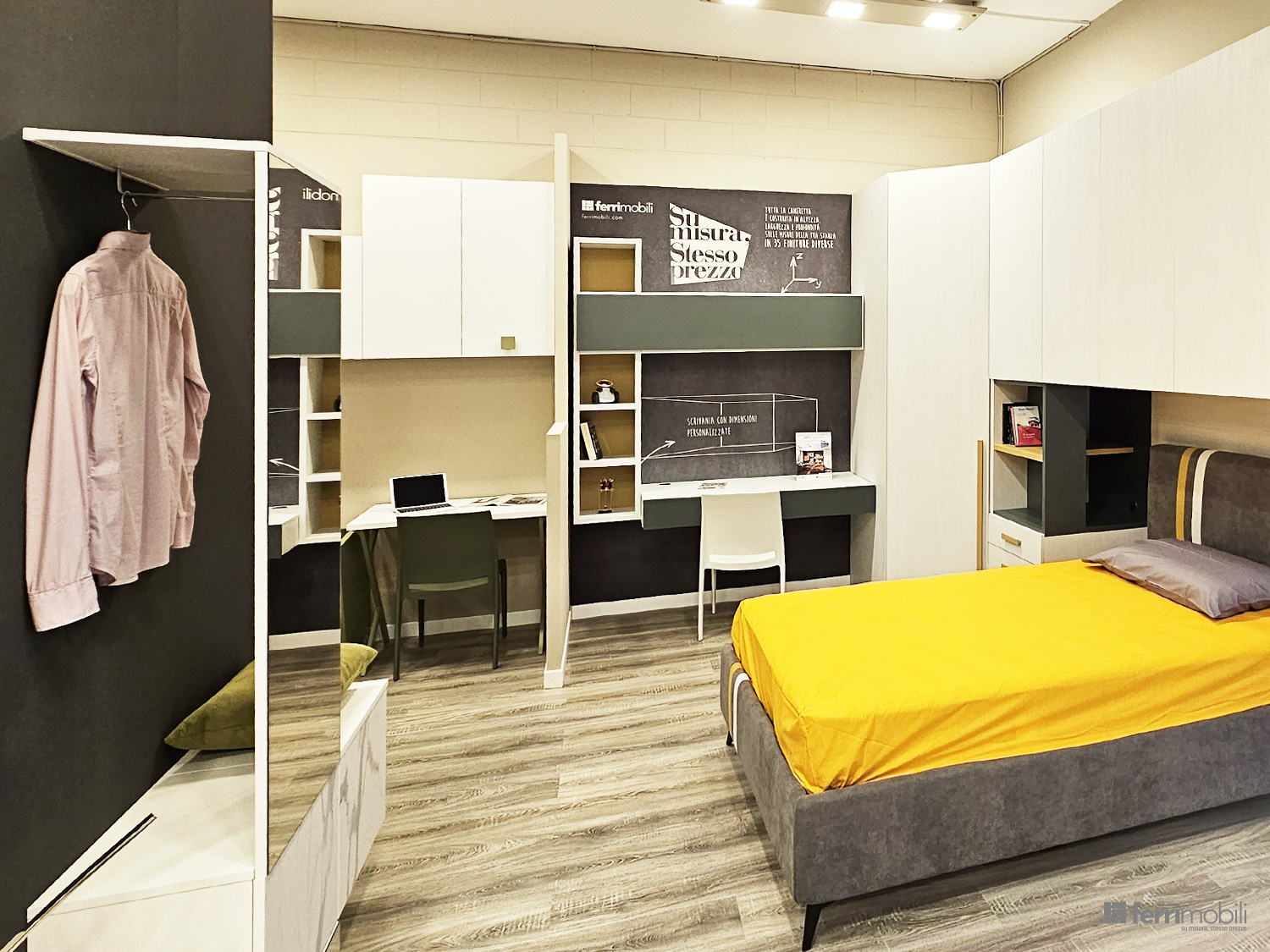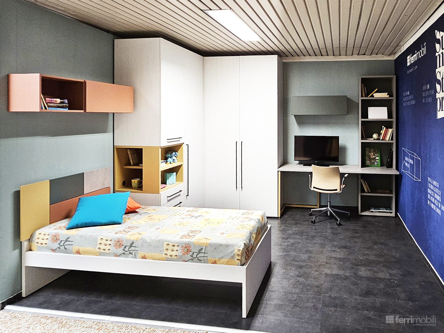 Cameretta su misura con libreria sospesa e zona studio (MUL TC 1234)