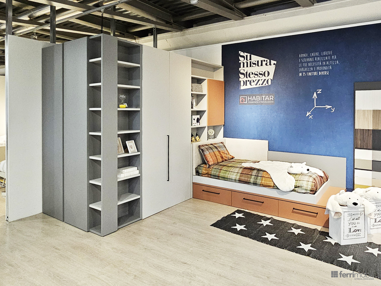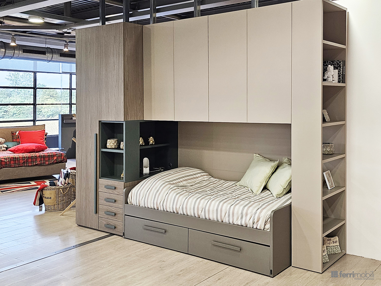 Cameretta su misura con armadio divisorio e libreria (MUL RI 3001)