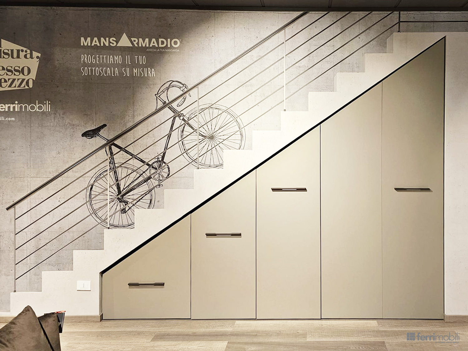 Armadio sottoscala su misura integrato nella scala (MAN PF 8020)