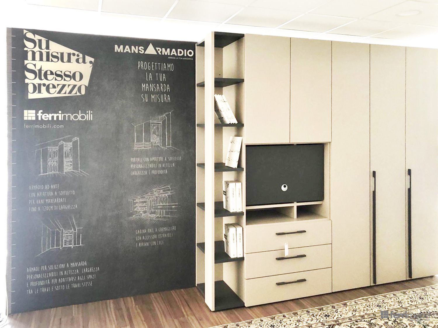 Armadiatura su misura con vano TV e libreria integrata (MIS VM 6009)