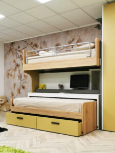 Ecco una cameretta moderna e funzionale progettata per rendere accogliente e confortevole ogni spazio a disposizione in esposizione presso il nostro rivenditore Piazza della Vittoria in provincia di Milano.
