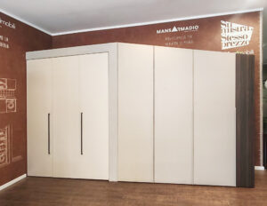 Ecco una cabina armadio e un armadio “Su misura, stesso prezzo” in esposizione presso il nostro rivenditore Passarini: si tratta di soluzioni personalizzate in altezza, lunghezza e profondità, progettate per soddisfare esigenze estetiche e funzionali.