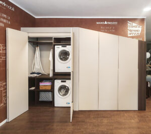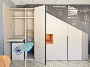 Ecco una soluzione Mansarmadio che prevede la zona lavanderia, personalizzabile secondo le proprie esigenze, in esposizione presso il nostro rivenditore Montella Prisma Arredo.