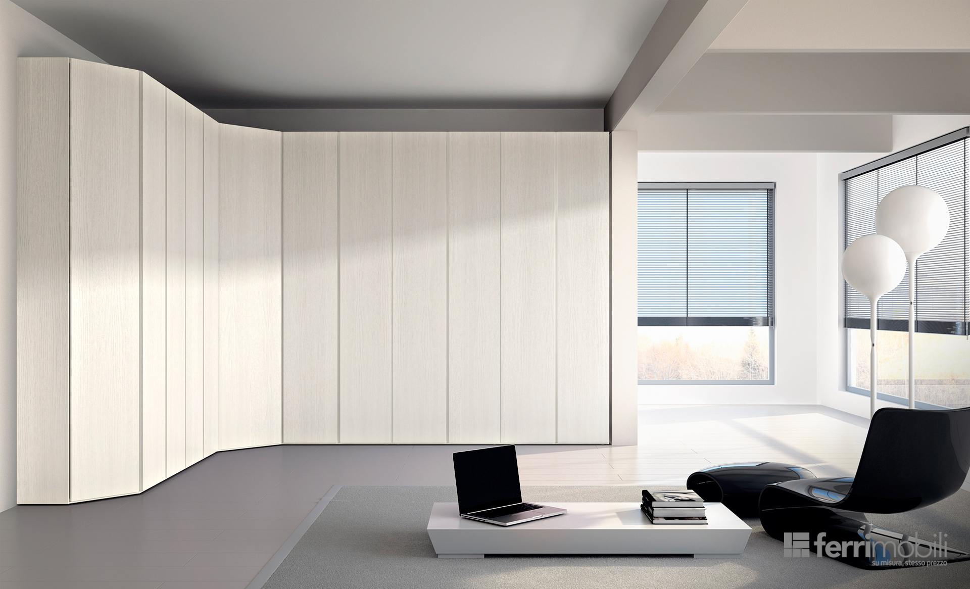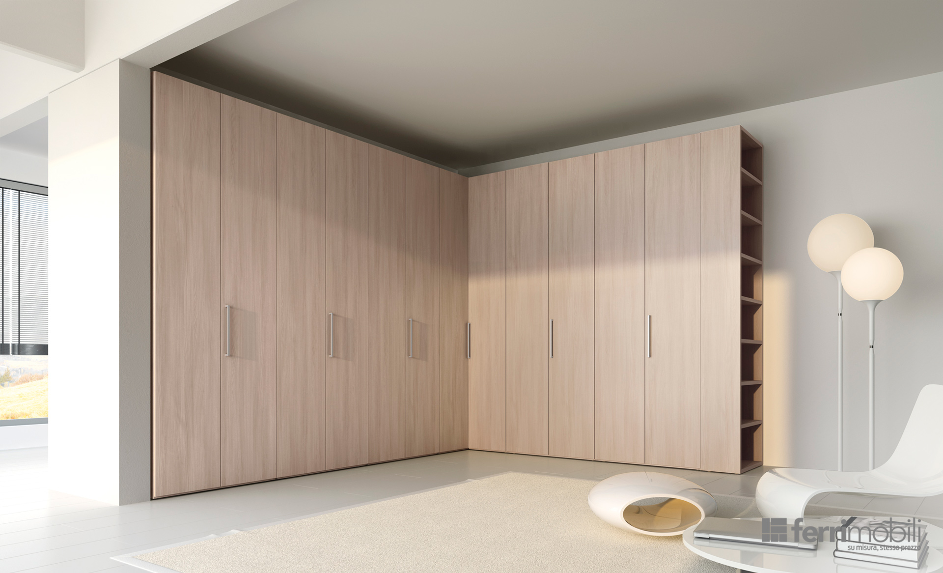 Aggiungici la comodità della formula esclusiva Ferrimobili “Su Misura, Stesso Prezzo”, che ti garantisce personalizzazioni in altezza, larghezza e profondità senza sovrapprezzi all’interno di un range di dimensioni, ed è subito chiaro perché Misurarmadio sarà il tuo arredo preferito.