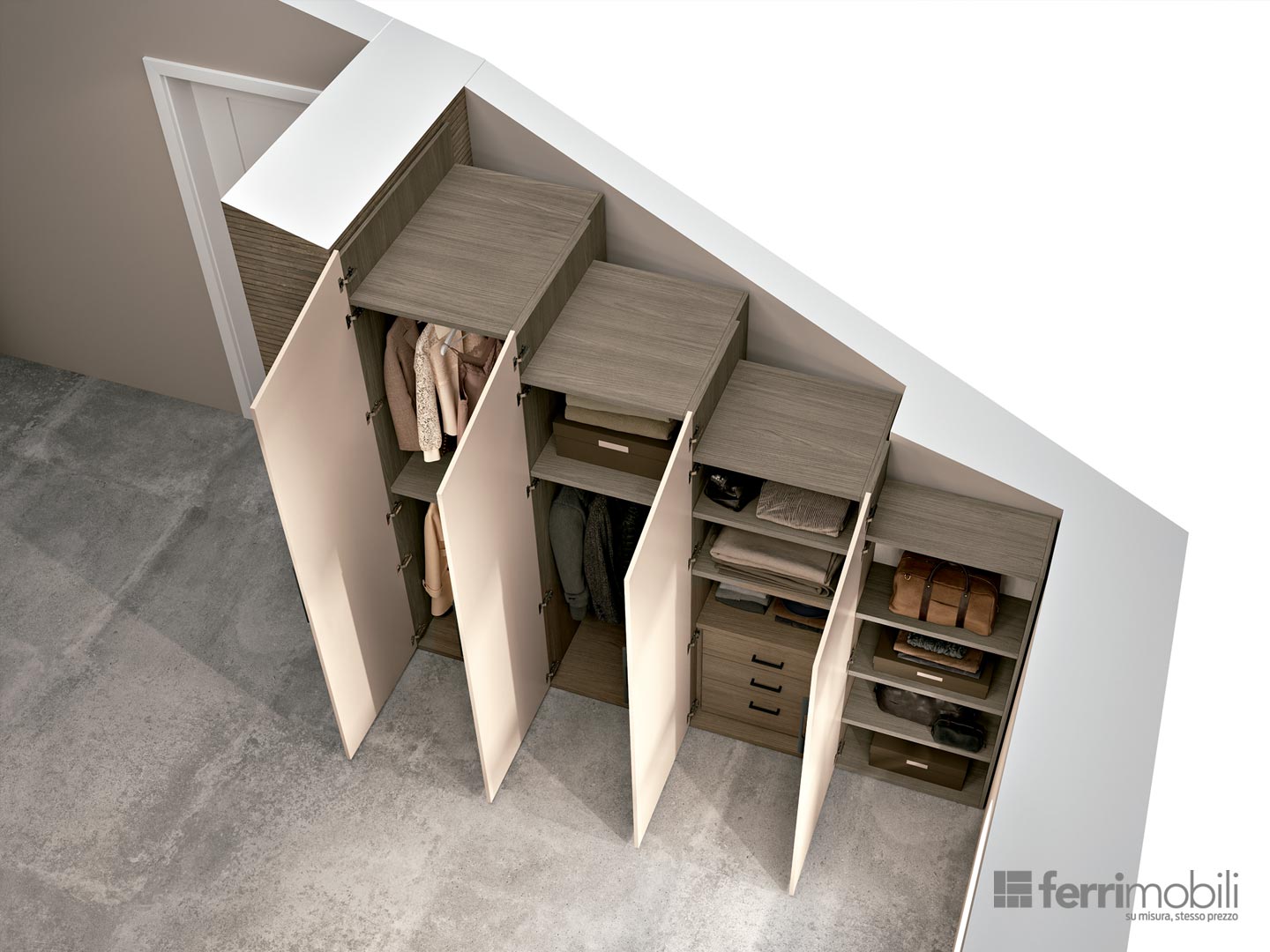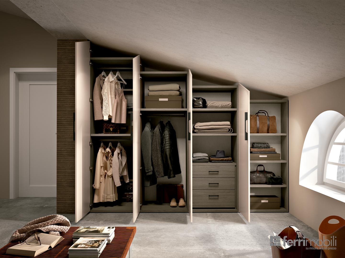 MansArmadio adatta gli elementi in altezza, larghezza e profondità. Questo ci permette di arredare perfettamente lo spazio anche in presenza di una nicchia dalla struttura complessa. I moduli sono tutti della stessa larghezza per un effetto estetico piacevole.