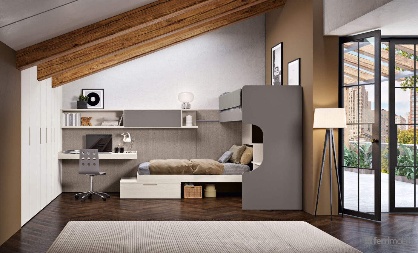 Cameretta mansarda letto scorrevole con scrivania – Composizione 116