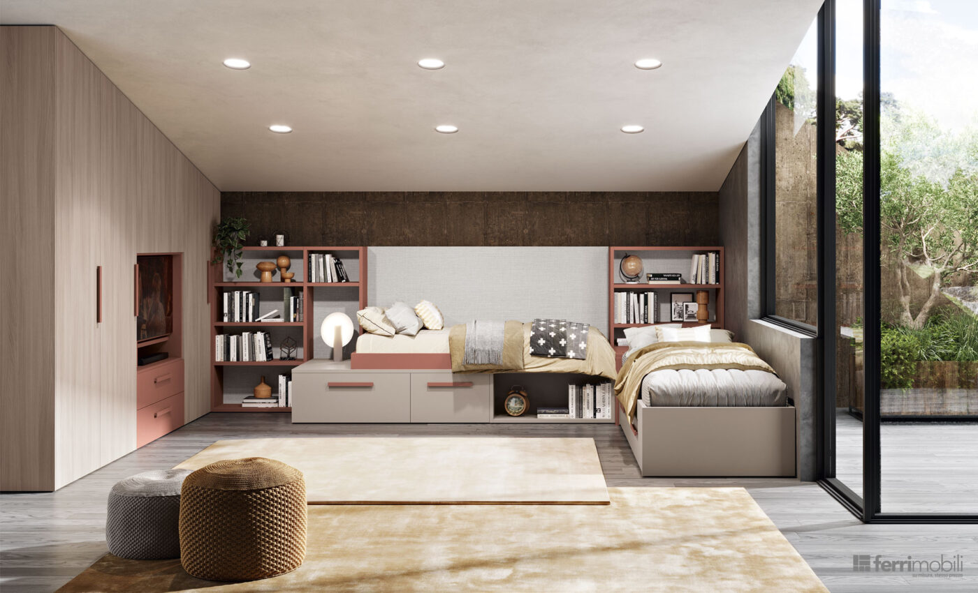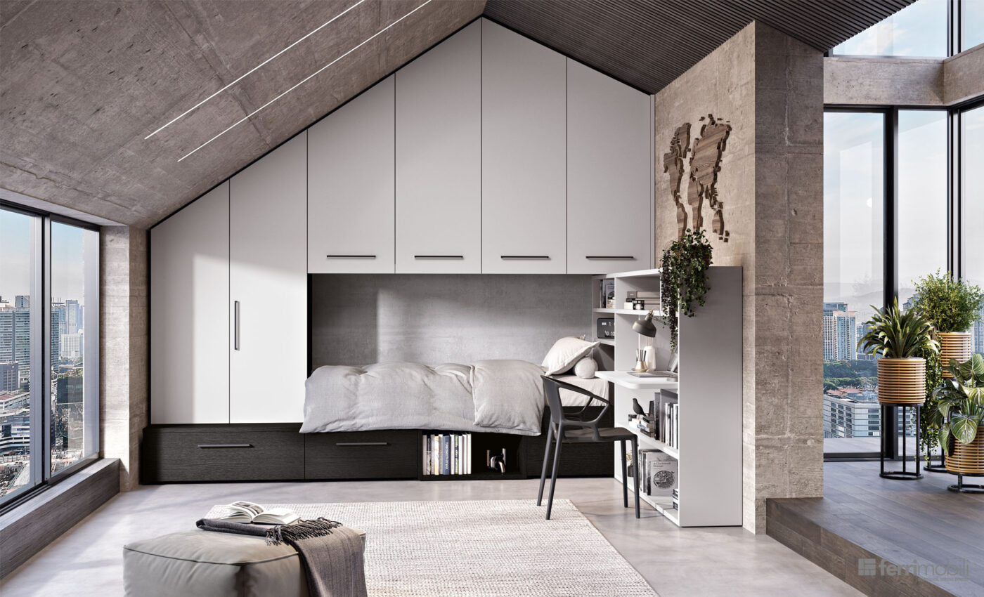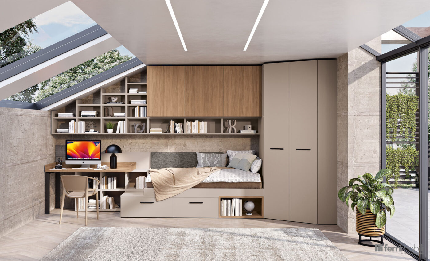 Cameretta mansarda travi doppio letto scorrevole – Composizione 112