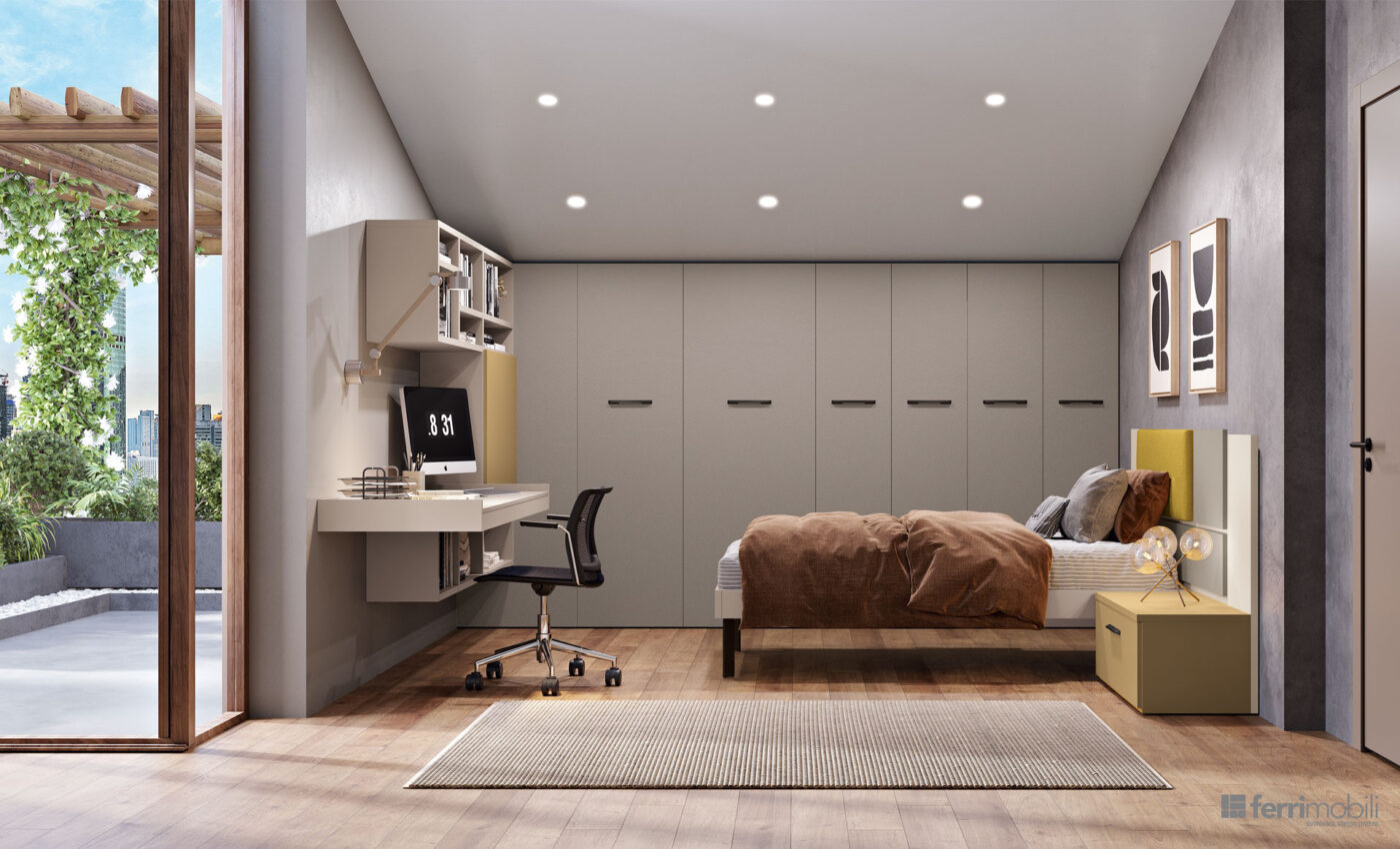 Cameretta mansarda ripostiglio e scrivania – Composizione 114