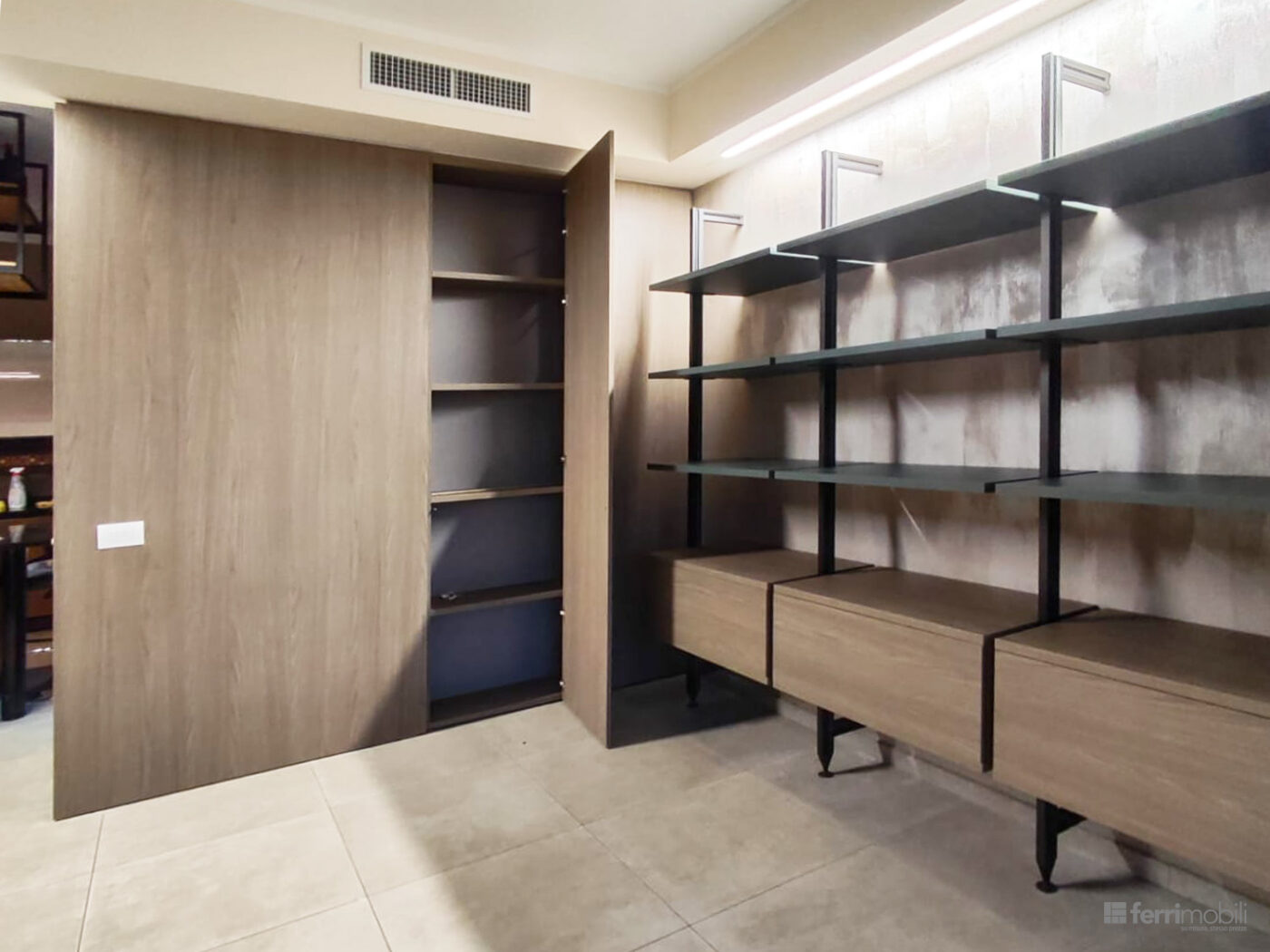 Al suo fianco, l’armadio divisorio a tutta altezza separa e delimita gli ambienti, diventando elemento architettonico oltre che contenitivo. La progettazione su misura consente di adattare profondità, altezze e larghezze alle dimensioni reali dello spazio, assicurando continuità materica e coerenza estetica.