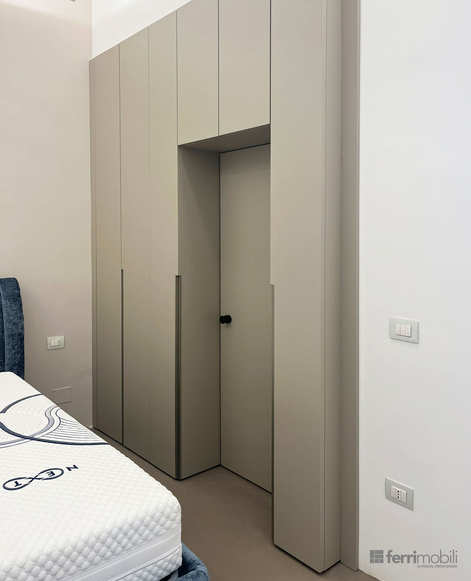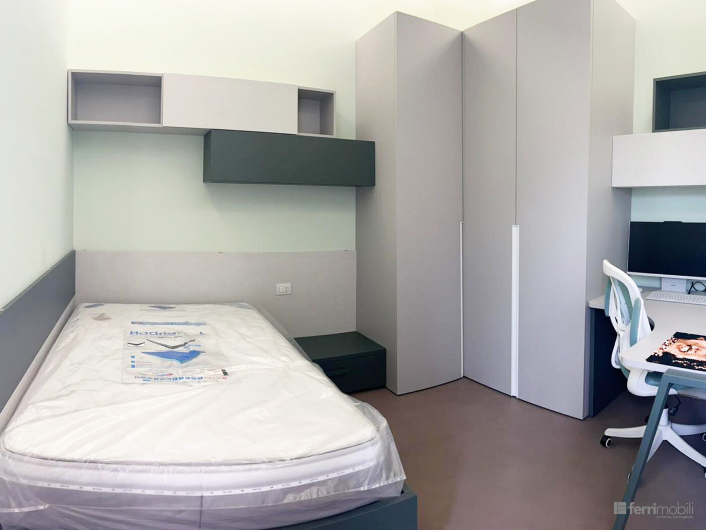 Cameretta con armadio ad angolo a misura e armadiatura con pensile sovraporta
