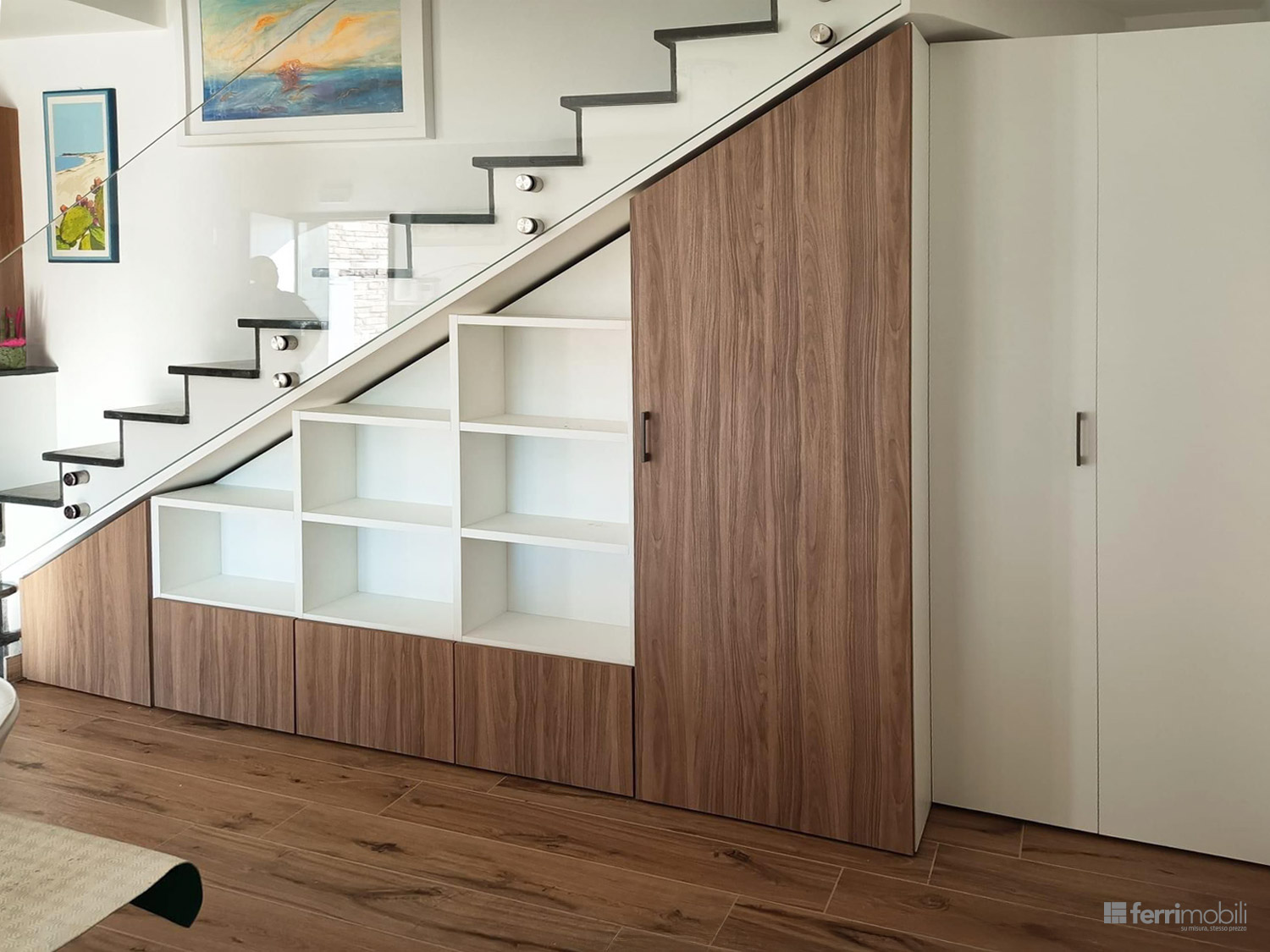Armadio sottoscala su misura con vani a giorno