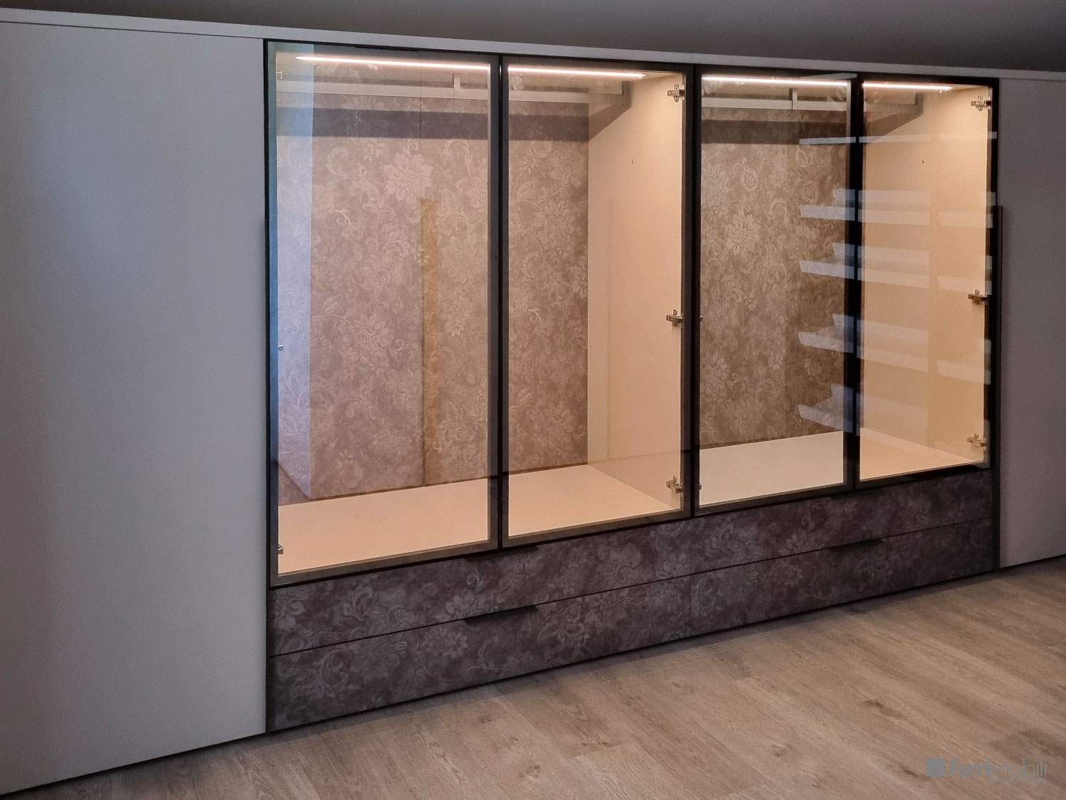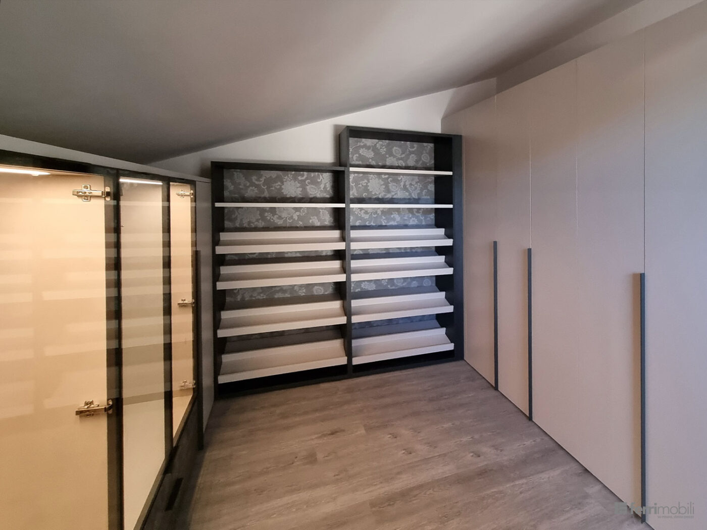 Armadietto con anta vetro e colonna portascarpe