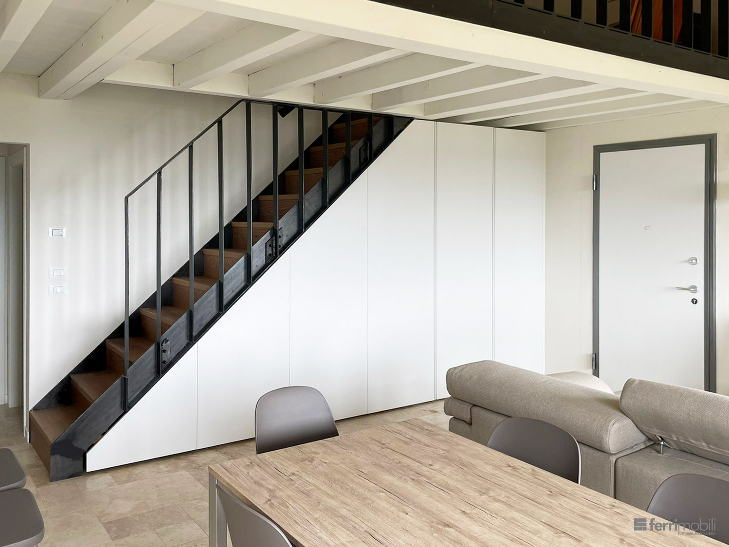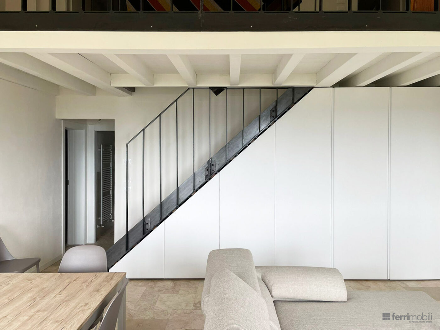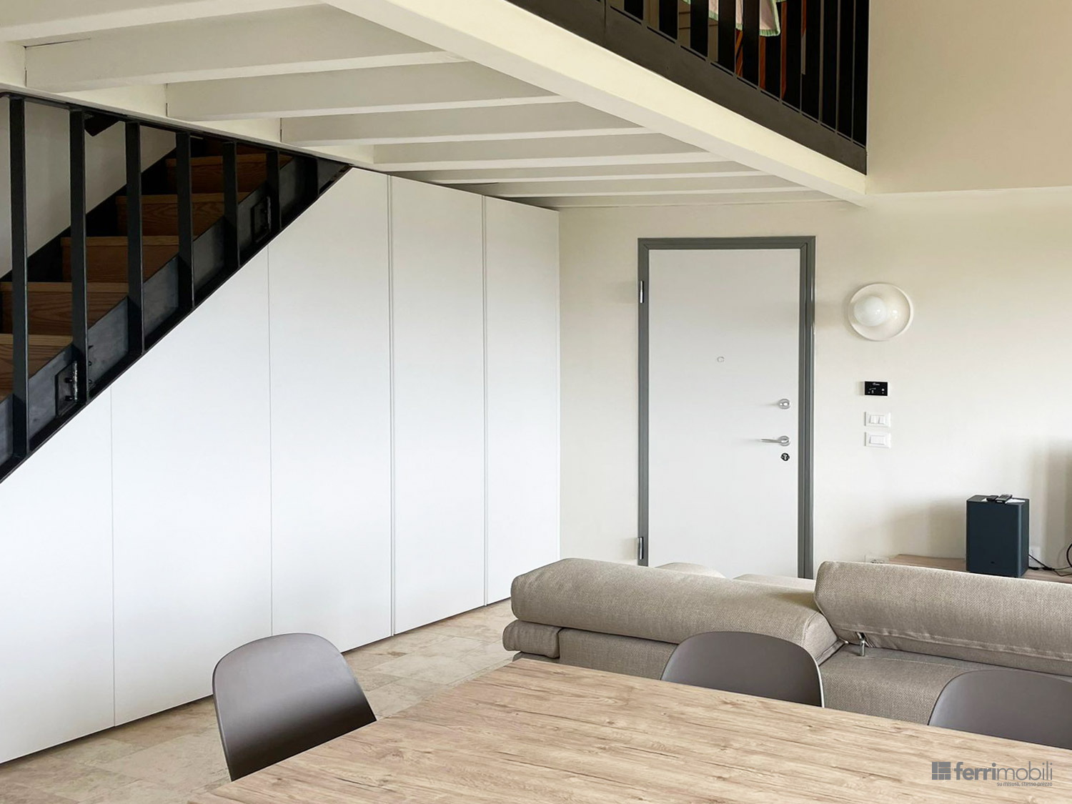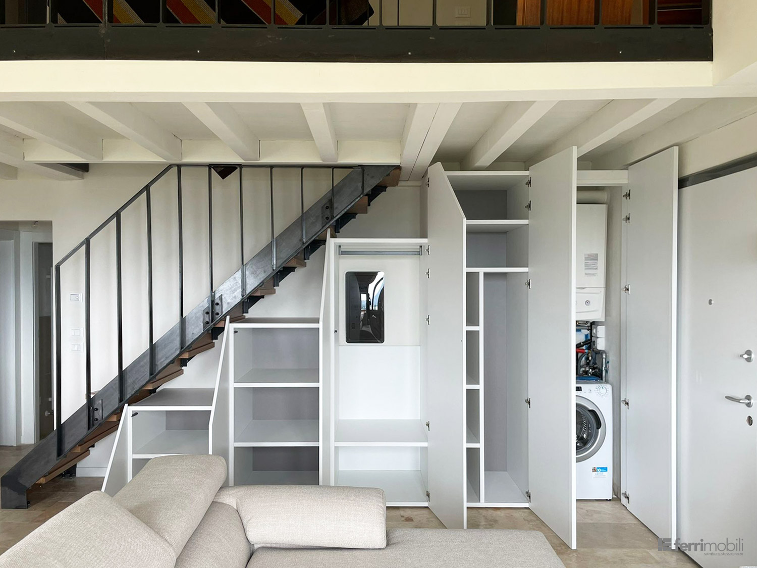 Armadio a misura per sottoscala con vano lavatrice e caldaia
