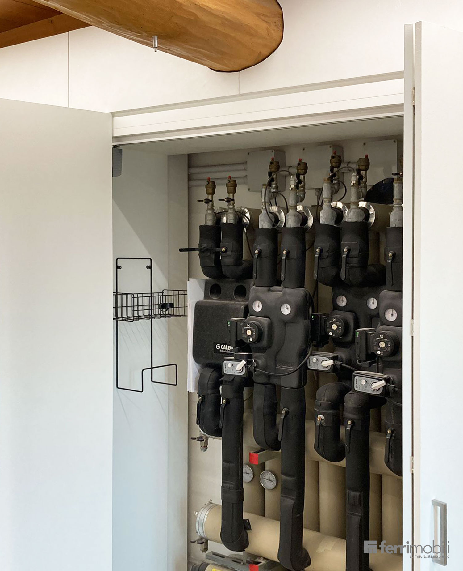 Armadiatura a misura e zona lavanderia per soffitto con travi