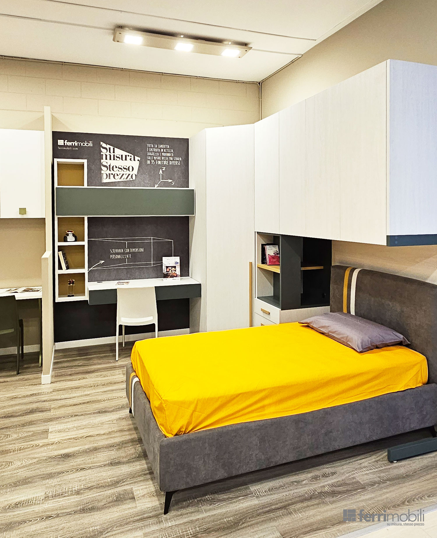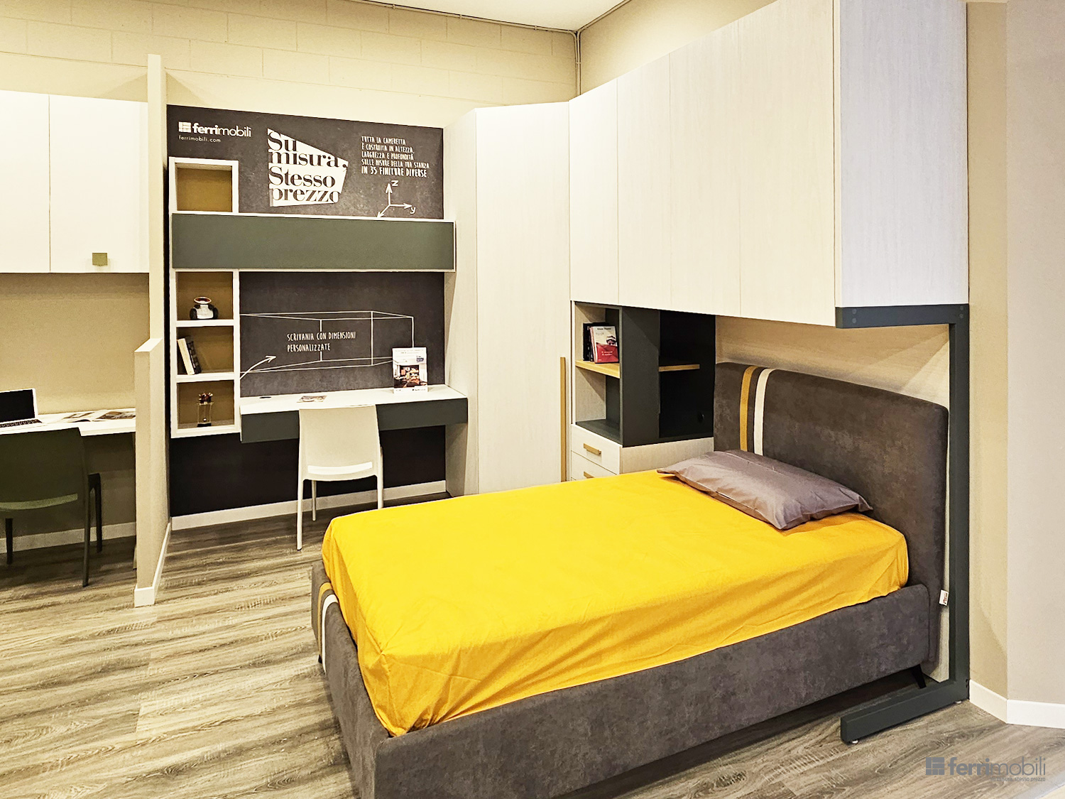 Cameretta su misura con libreria sospesa e zona studio (MUL TC 1234)