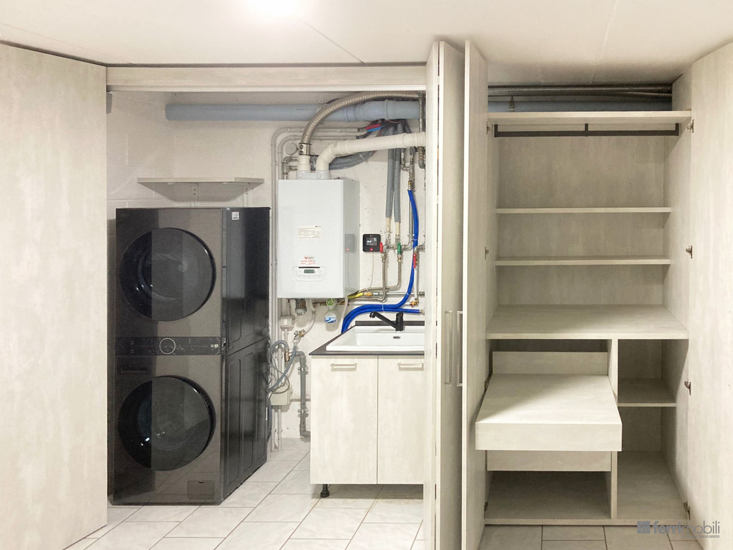 La progettazione su misura permette di adattare profondità, larghezze e suddivisioni interne alle esigenze reali, integrando impianti esistenti senza comprometterne l’accessibilità. Accanto alla zona lavanderia è ricavata una sezione ripostiglio, con ripiani e vani organizzati per sfruttare al massimo ogni centimetro disponibile.